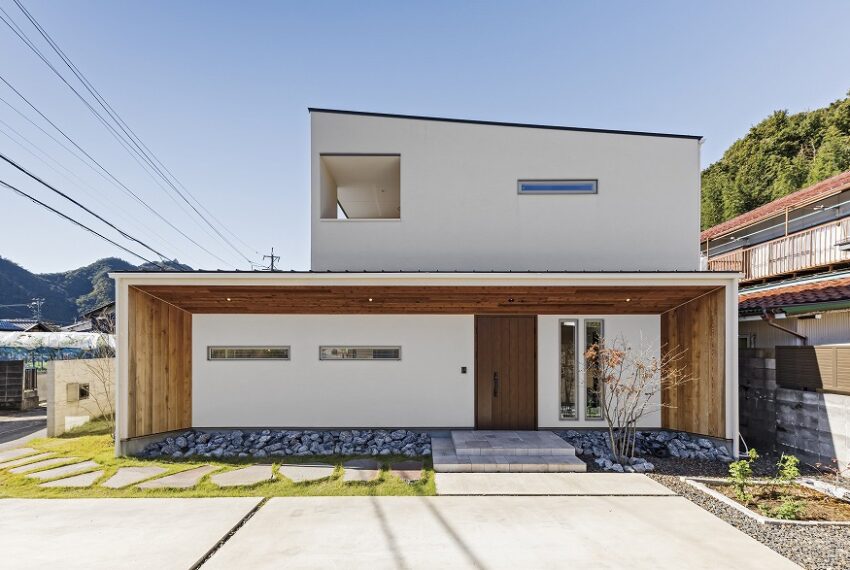- ガレージと玄関をつなぐ、曲線が美しい家