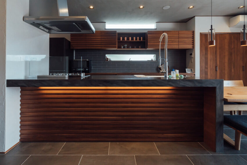 - オリジナルキッチンとアウトリビングのある家